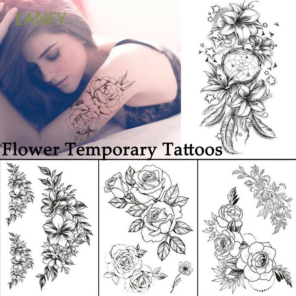1 Pc Moda Feminina Menina Temporaria Tatuagem Adesivo Rosas Pretas Design Flor Cheia Braco Arte Do Corpo Grande Falso Tatuagem Adesivo Tatuagens Temporarias Aliexpress