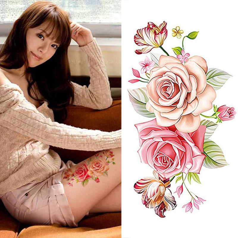 Sexy Realista Flor Temporaria Tatuagens Adesivo A Prova Dwaterproof Agua Adulto Falso Tatuagem Preto Rosa Bloossom Corpo Arte Tatoo Para Meninas Tatuagens Temporarias Aliexpress