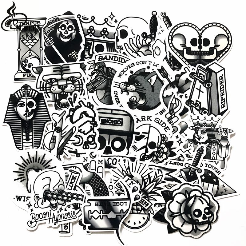 2021 Black White Old School Tattoo Stickers For Laptop Suitcase Skateboard Little Vintage Style Waterproof Sunscreen Decals From Royal120 1 76 Dhgate Com