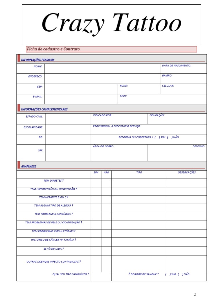 Resultado De Imagem Para Ficha De Anamnese De Tattoo E Piercing Para Menores Anamnese Tattoo E Piercing Montagem De Tatuagem