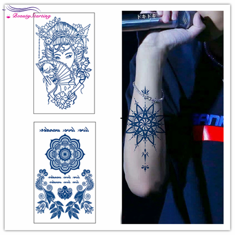 Bt Adesivo De Tatuagem De Longa Duracao A Prova D Agua Azul Rosa Com Renda Sol Lua Design 21 40 Shopee Brasil