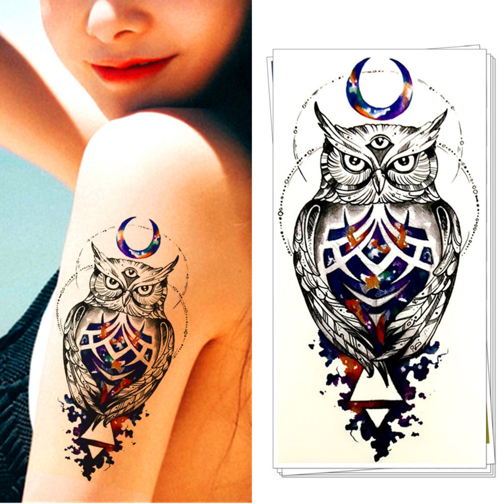 Etiqueta De Tatuagem Temporaria De Tres Olhos Coruja Transferencia De Agua Tatoo Body Art Shopee Brasil