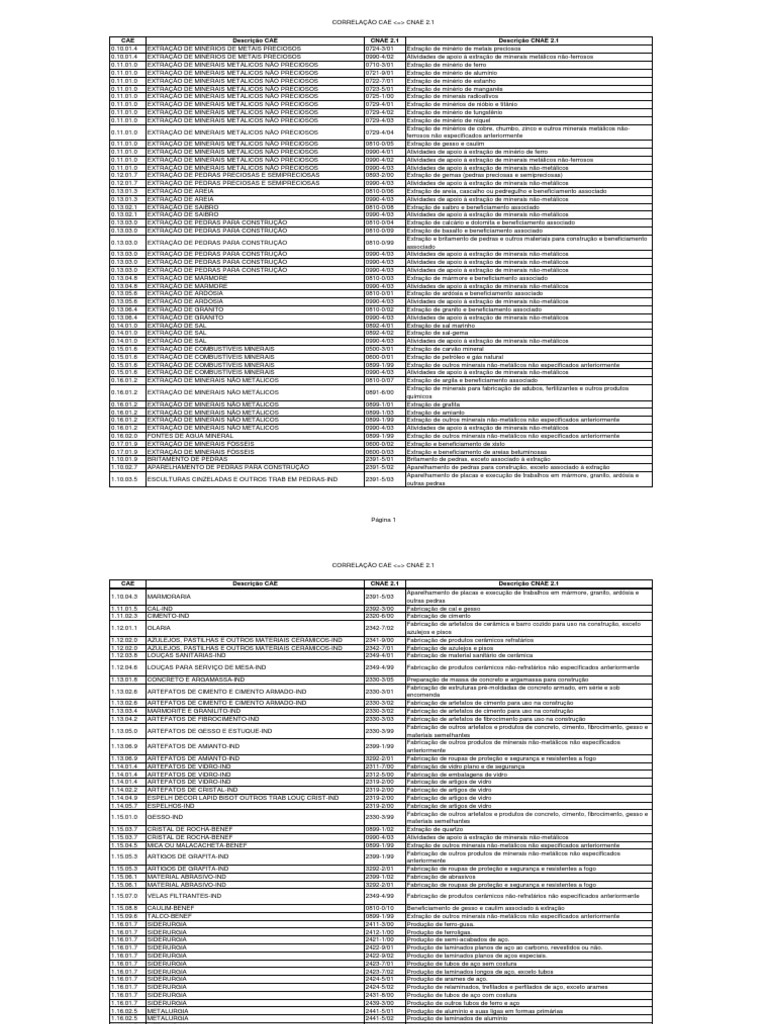Correlacao Cnae E Cae Metalurgia Metais